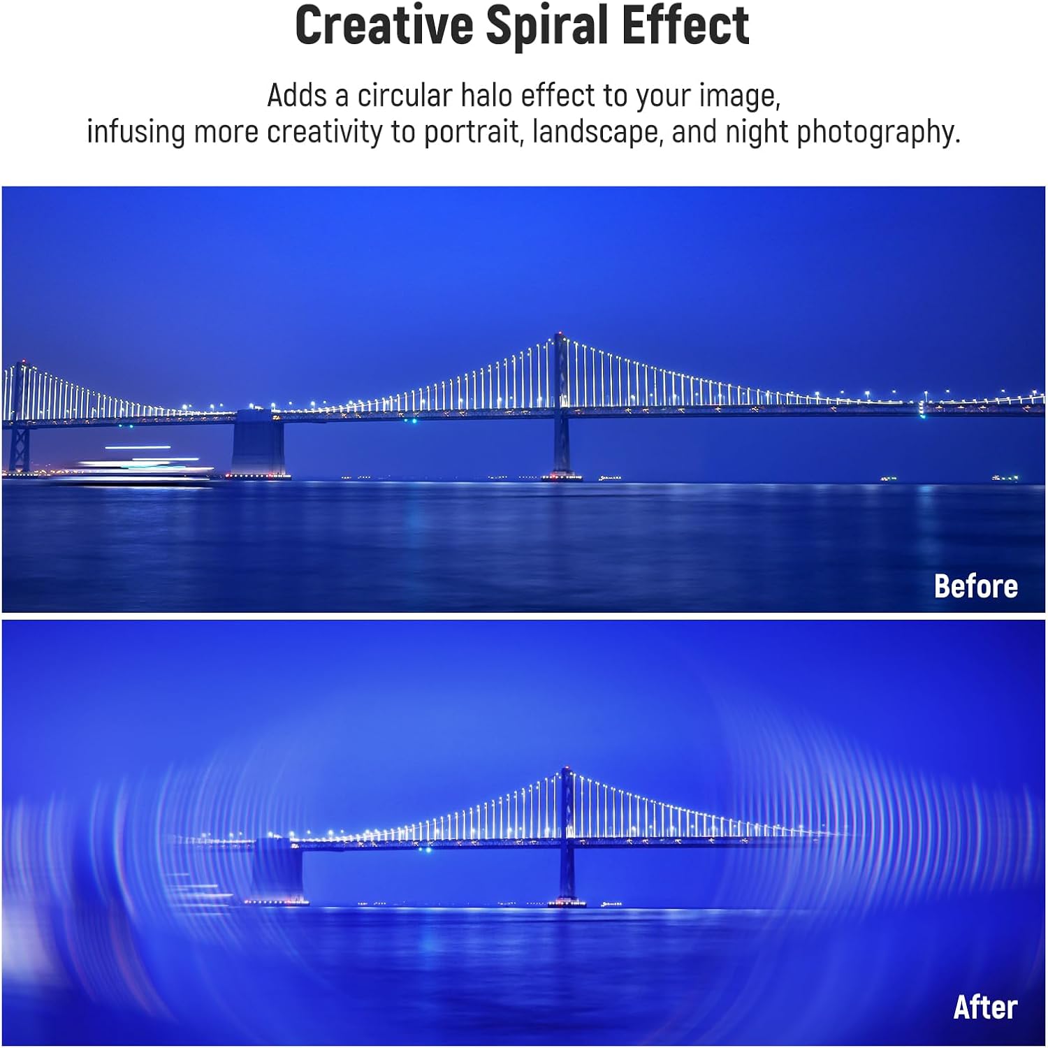 Compatible with 82mm camera lenses, this accessory is a must-have for photographers looking to elevate their creativity. Whether you’re shooting portraits, landscapes, or abstract compositions, the NEEWER Spiral Halo Filter will enhance your images with a touch of magic.
